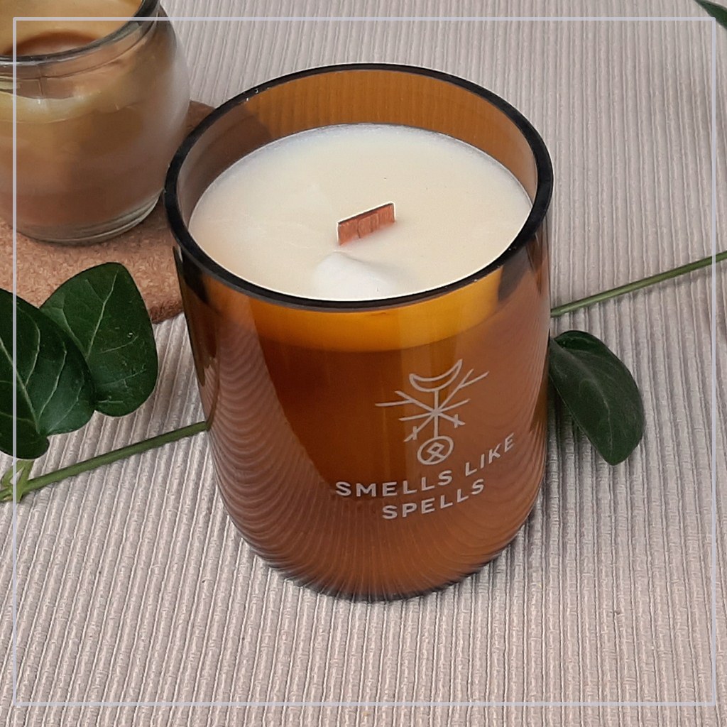 Mirisna svijeća Smells Like Spells Mimir od sojinog voska lagano pucketa pri gorenju što naglašava njeno pozitivno djelovanje. Svijeća ima do 40 h gorenja s obzirom na sojin vosak s nižom točkom topljenja. S obzirom na drveni fitilj i sojin vosak, potrebno je svijeću paliti na dnu fitilja kako bi se vosak ravnomjerno topio (bez stvaranja 'bazena'). Svijeća pomaže u rješavanju teških situacija te čisti i osvježava vaš um. Također je idealna za meditaciju, a jednostavne upute možete pronaći u pakiranju.
